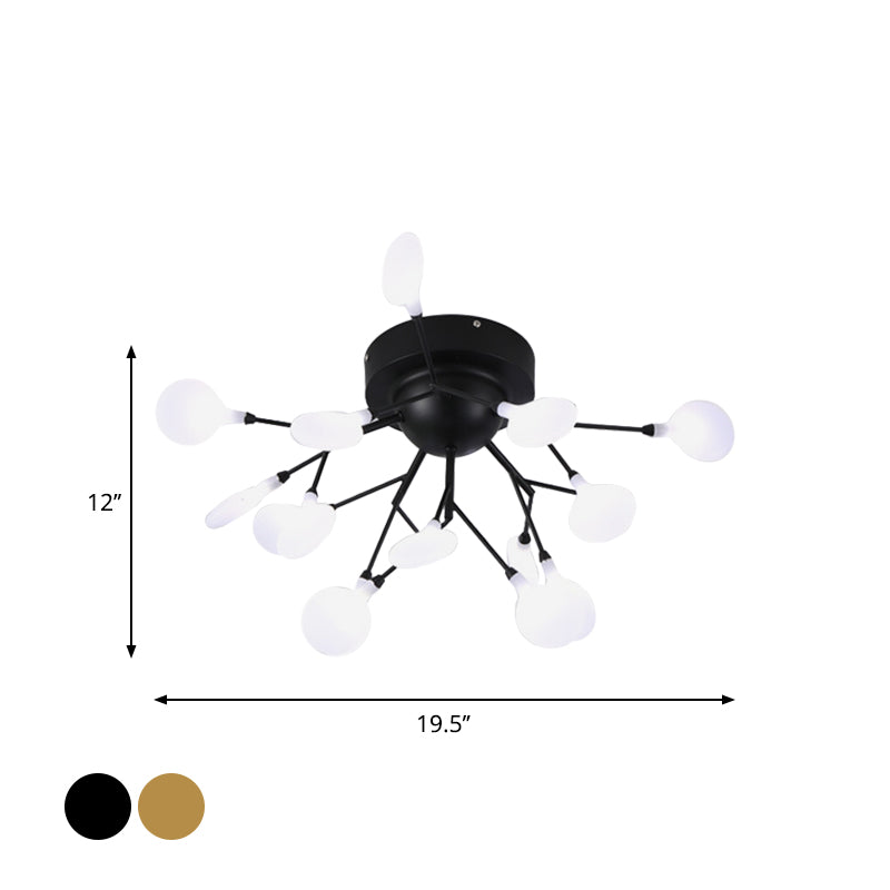 Modern Led Flushmount Ceiling Lamp - Metallic Contemporary Lighting For Bedroom 15 / Black Leaf