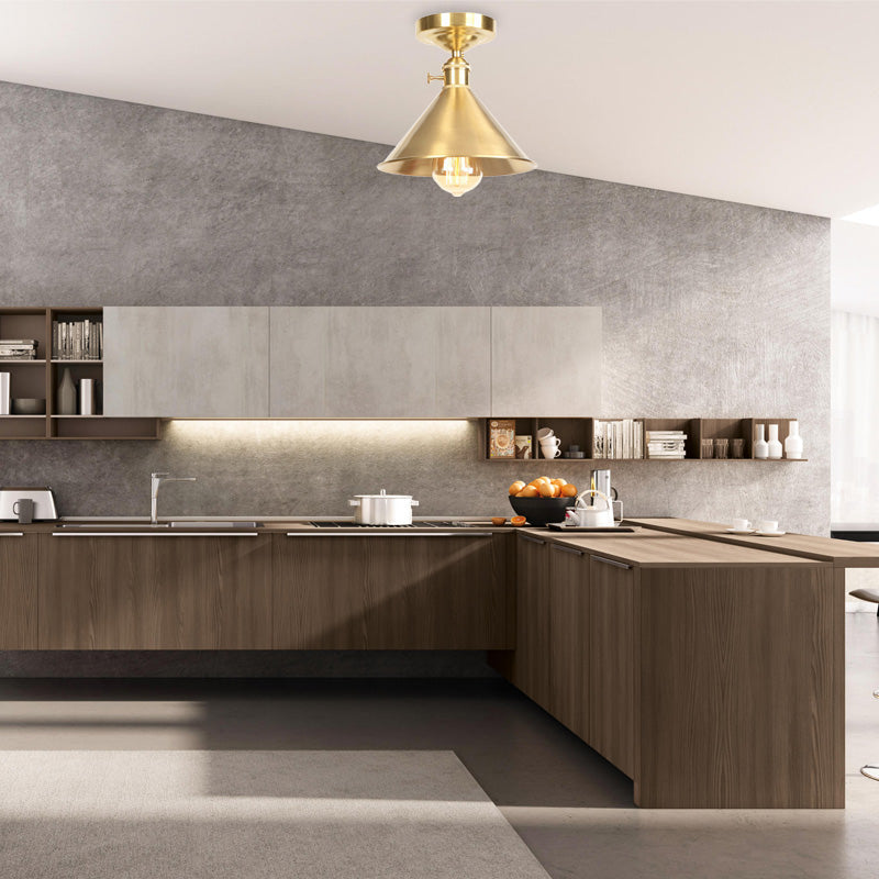 Vintage Industrielle Halbbündige Leuchte aus gebürstetem Messing - 1 Licht Deckenmontierte Balkonleuchte, 8"/9,5" breit
