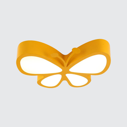Kids Led Butterfly Ceiling Lamp With Acrylic Shade - Red/Yellow/Blue Flushmount Light Yellow