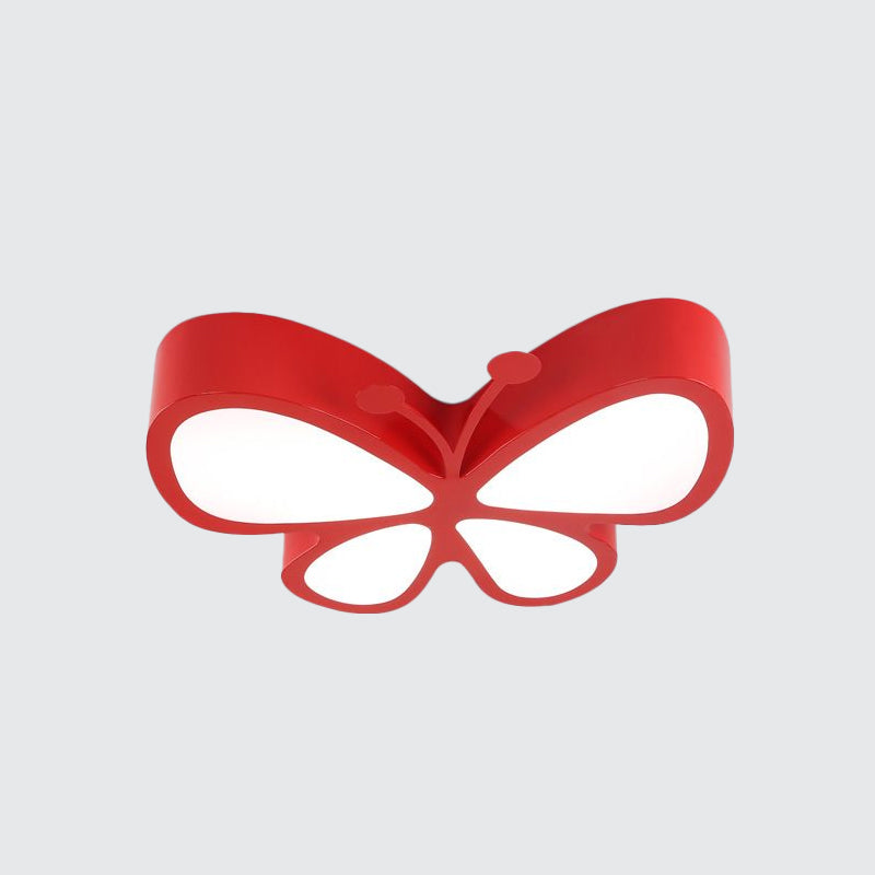 Kids Led Butterfly Ceiling Lamp With Acrylic Shade - Red/Yellow/Blue Flushmount Light Red
