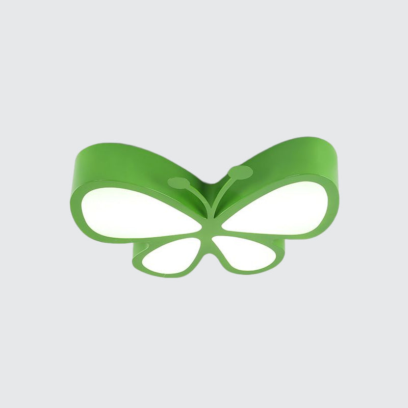 Kids Led Butterfly Ceiling Lamp With Acrylic Shade - Red/Yellow/Blue Flushmount Light Green