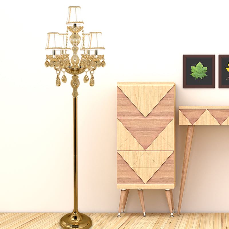Traditional Clear Crystal Candlestick Floor Lamp With White Shade - Gold Standing Light 5 / With