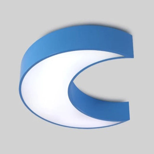Kids Cartoon Moon Ceiling Light: Acrylic Flushmount Fixture For Nursing Room & Bedroom Blue
