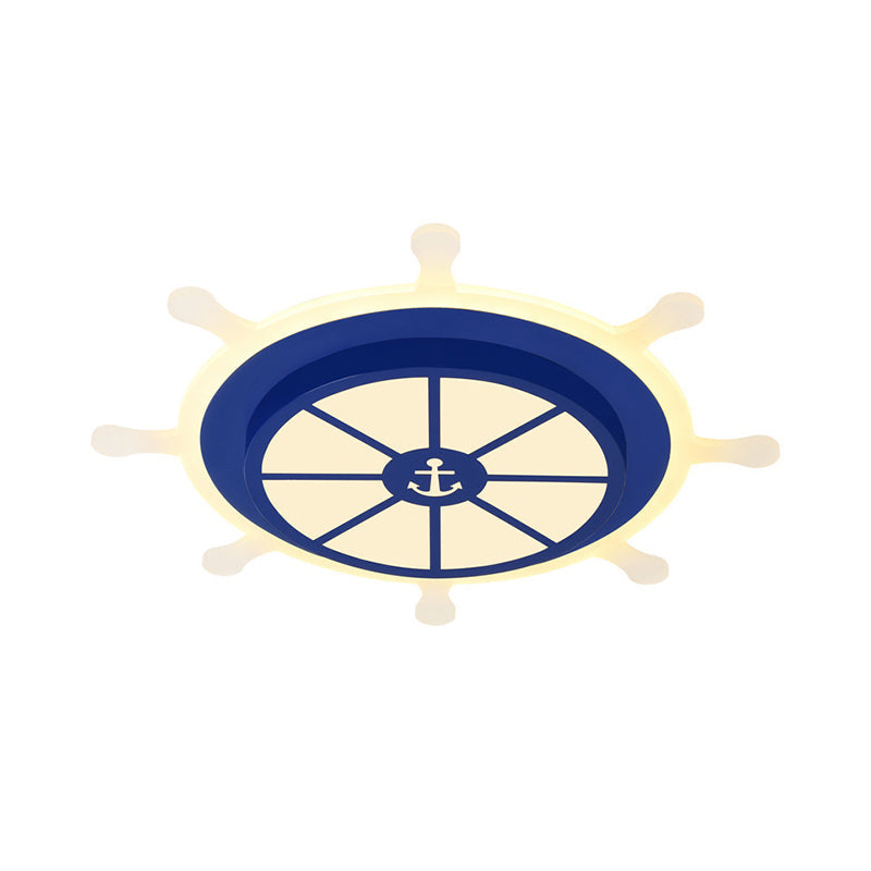 Cartoon Led Flush Pendant Light With Acrylic Rudder Shade - Blue White/3 Color / White