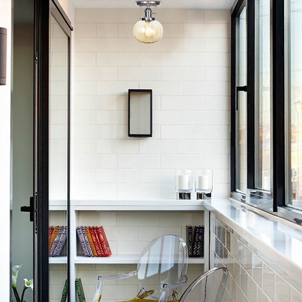 Industrial Chrome Ceiling Mount Light With Clear/Amber Glass For Dining Room Amber / Globe