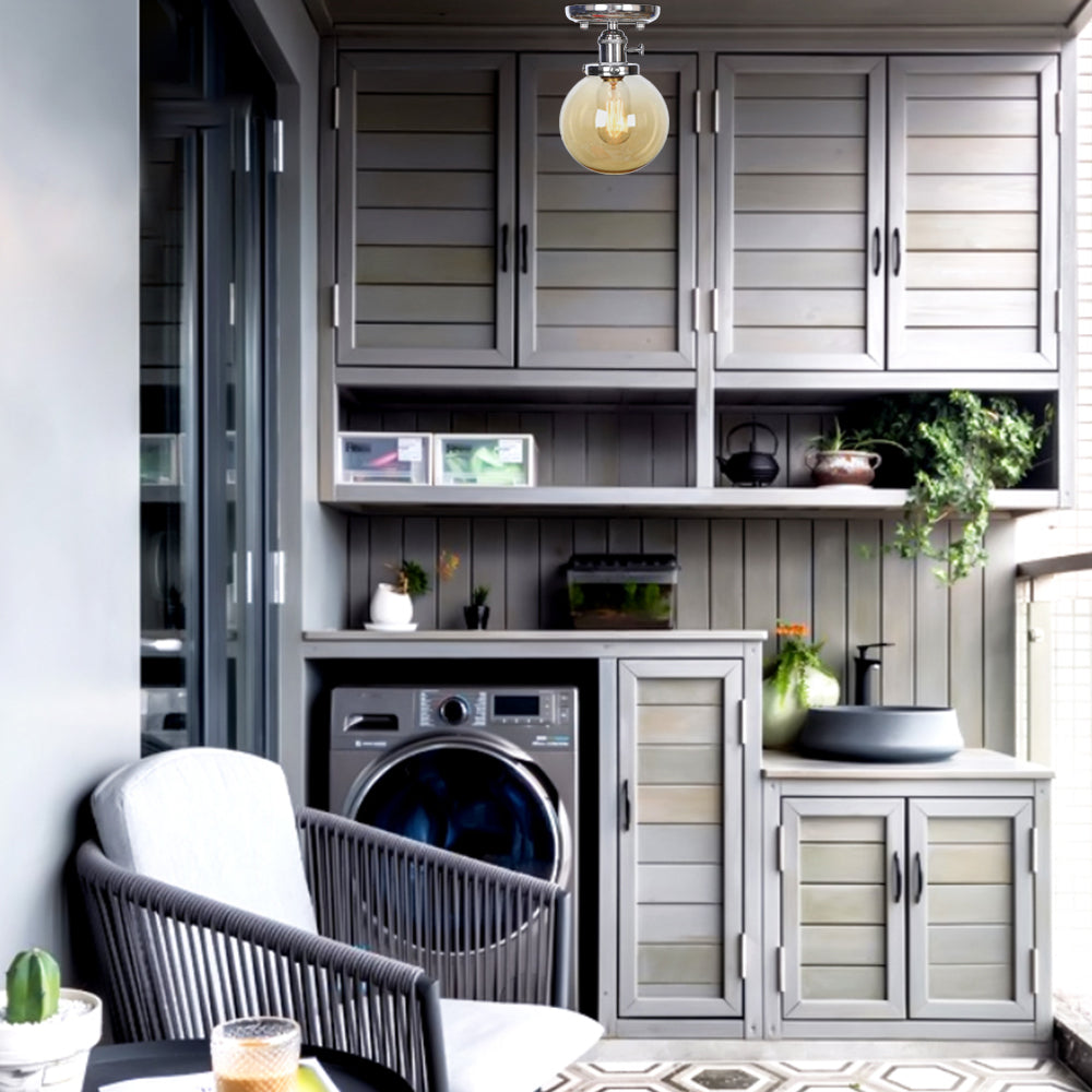 Industrial Chrome Ceiling Mount Light With Clear/Amber Glass Globe For Dining Room Amber / Round