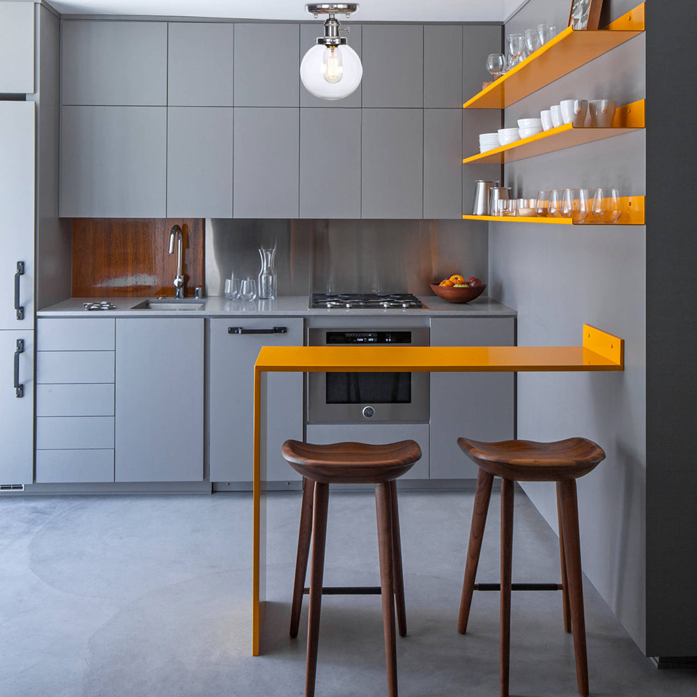 Industrial Chrome Ceiling Mount Light With Clear/Amber Glass Globe For Dining Room Amber /