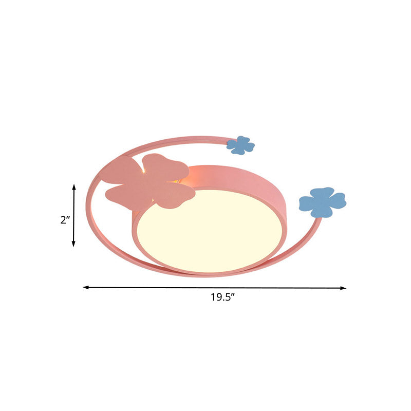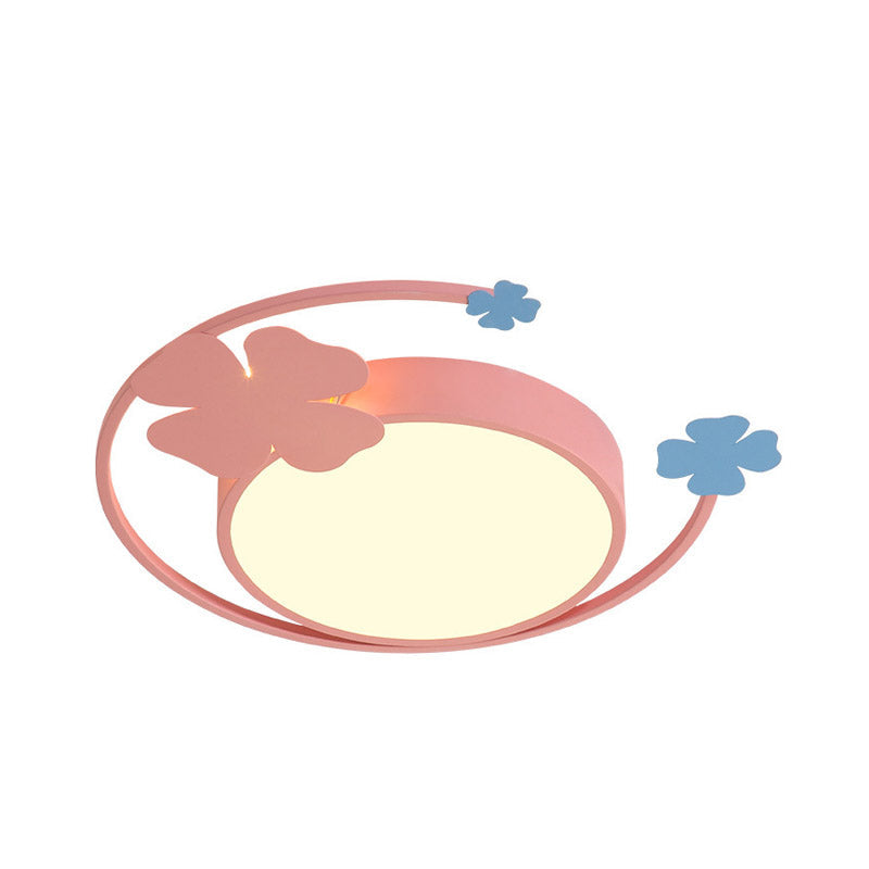 Macaron Pink Led Flush Mount Light With Clover Detail - Warm/White Lighting