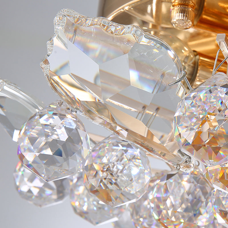 Moderne Deckenleuchte mit Kristallkugeln und LED, halbbündige Montage in Gold/Silber