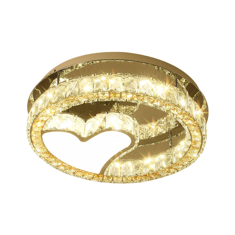 Modern Led Heart Design Ceiling Lamp With Clear Crystal Blocks And Stainless-Steel Finish - 18/19.5