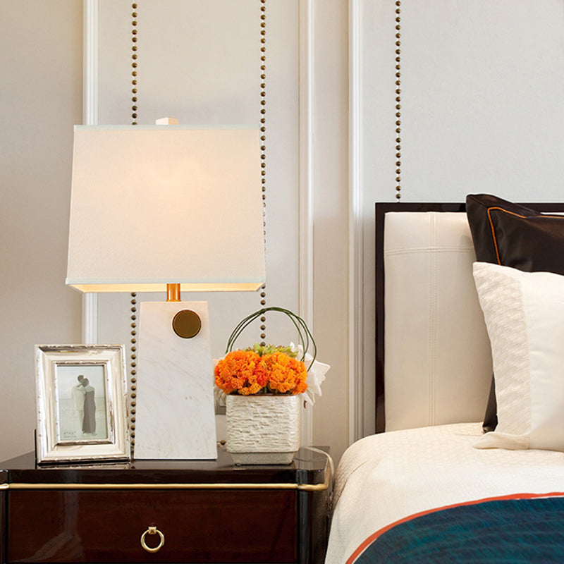 Modern White Pagoda Reading Light With Fabric Shade - 1 Bulb Task Lighting