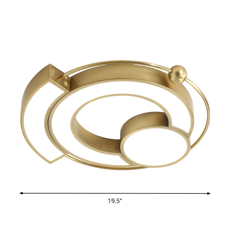Modern Gold Flush Mount Led Bedroom Light Fixture With Hollow Metal Design And White/Yellow