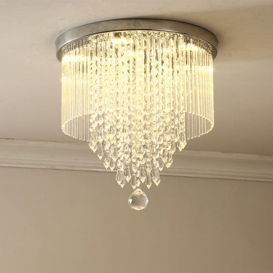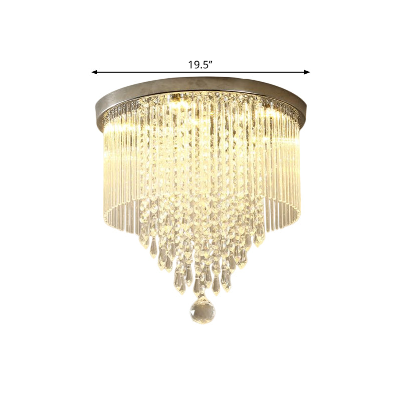 Modern Led Crystal Shade Chrome Flushmount Light 8’/19.5’ Wide Cylinder Ceiling Lamp