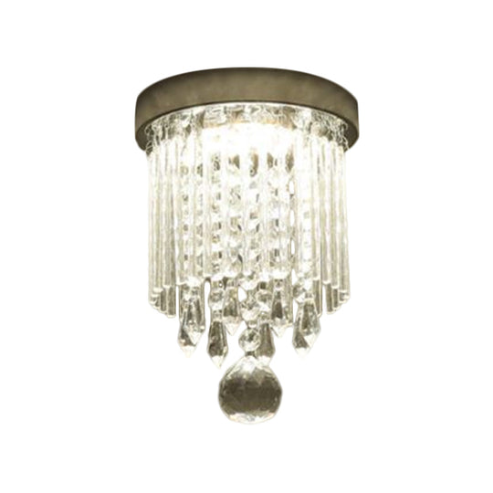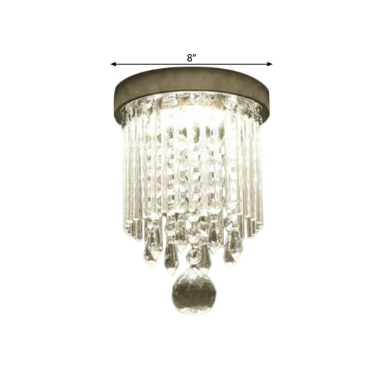 Modern Led Crystal Shade Chrome Flushmount Light 8/19.5 Wide Cylinder Ceiling Lamp