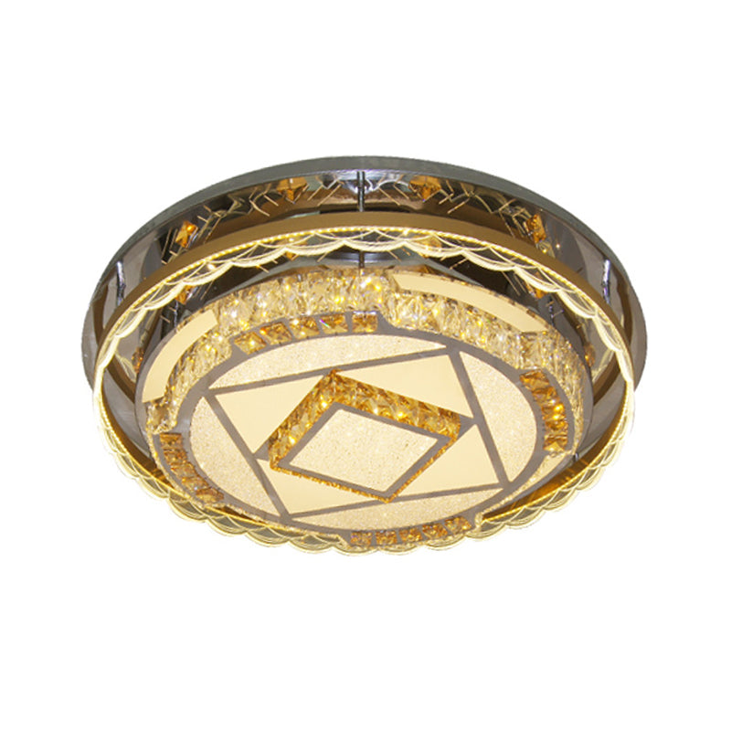 Moderne runde LED-Deckenleuchte mit Kristallblöcken in Nickel – perfekt für die Schlafzimmerbeleuchtung