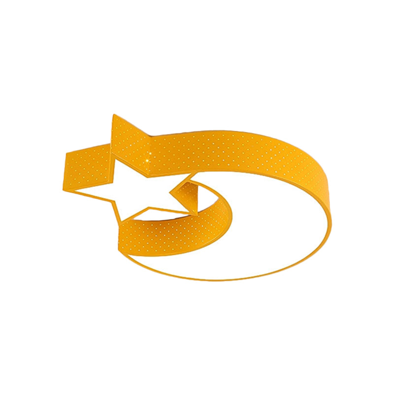 Nursery Led Cartoon Flush Mounted Lamp With Crescent And Star Ceiling Design In Multiple Colors Red
