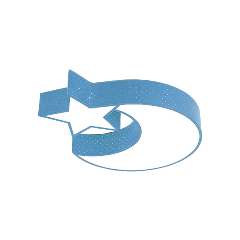 Nursery Led Cartoon Flush Mounted Lamp With Crescent And Star Ceiling Design In Multiple Colors Blue