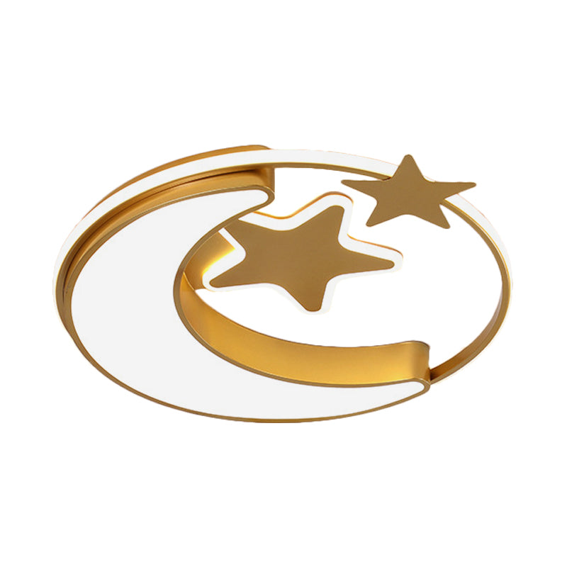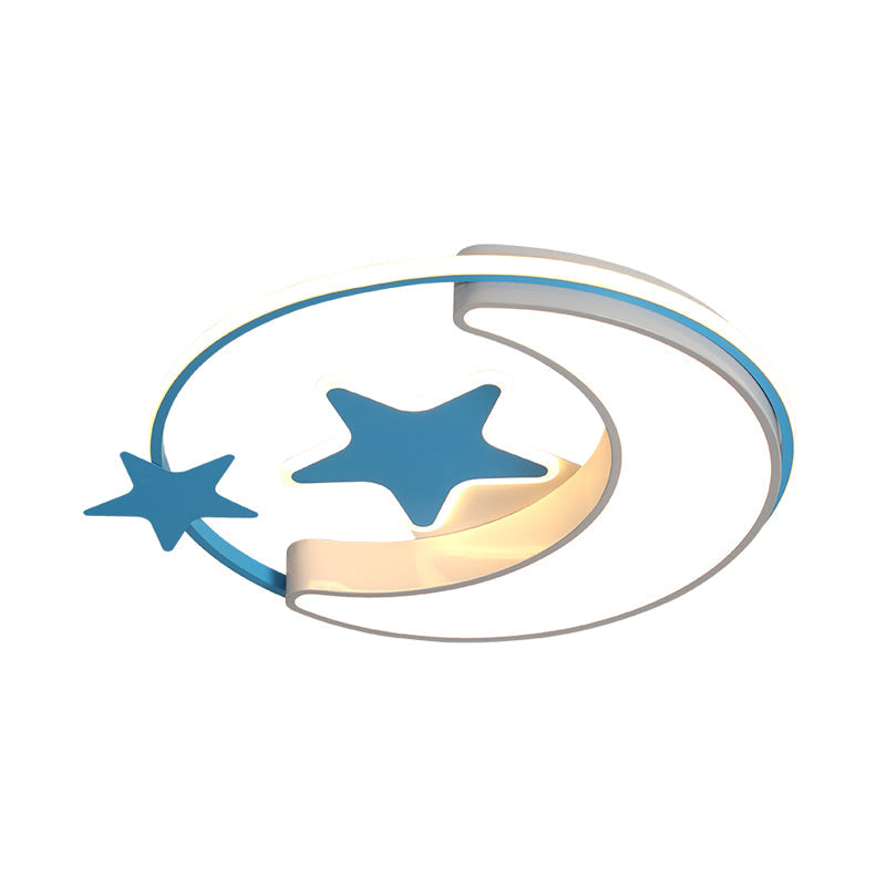 Contemporary Acrylic Flushmount Light For Kids Bedroom - Crescent And Star Design In Pink/Gold/Blue