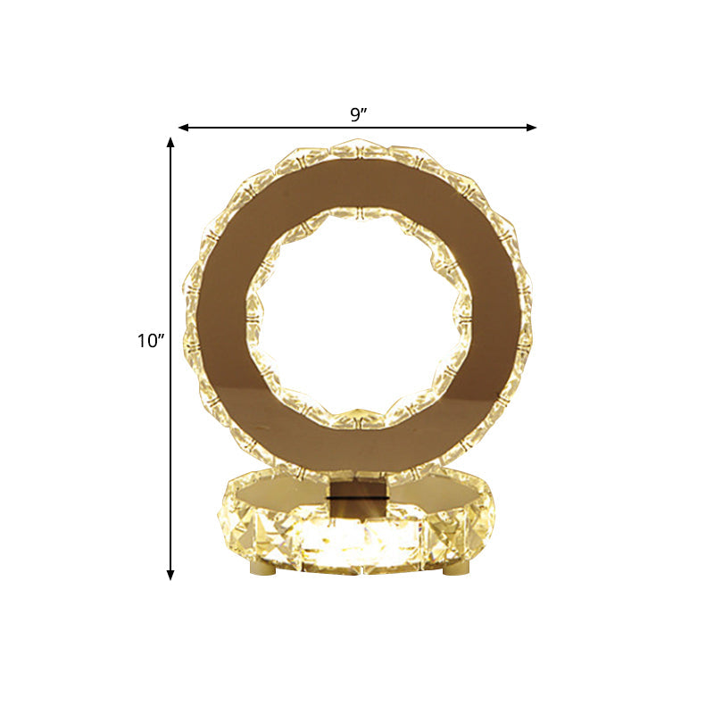 Contemporary Crystal Led Bedside Lamp In Chrome - Ferris Wheel-Inspired Table Light With Warm/White