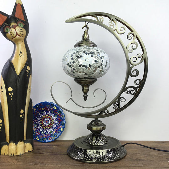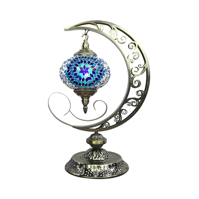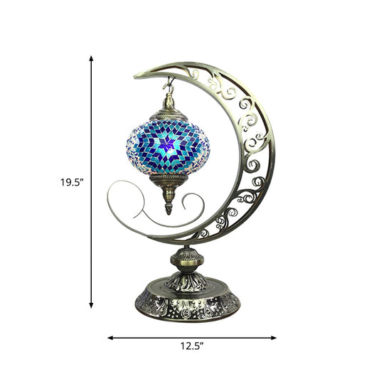 Stained Glass 1-Light Nightstand Lamp With Moon Design - Global Decor White/Red/Pink Desk Light Blue