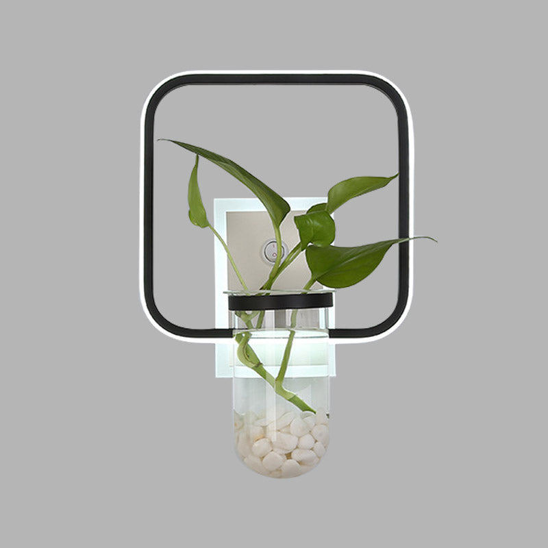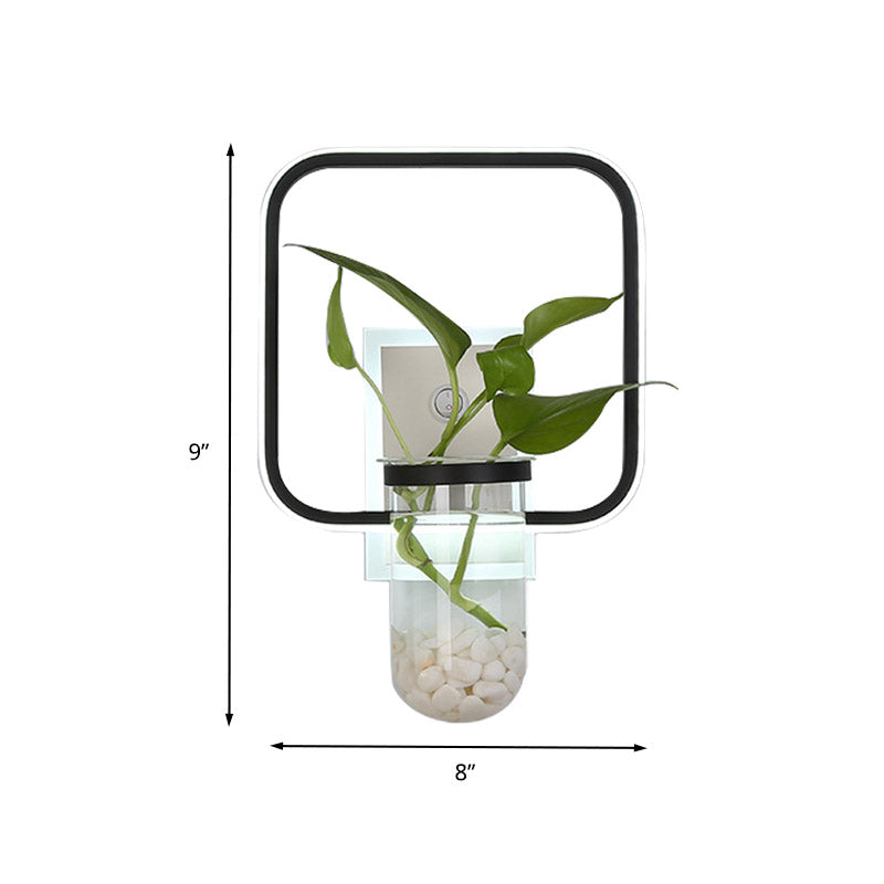 Industrial Led Metal Wall Mount Sconce Light Fixture With Plant Cup In Black For Bedroom / Square