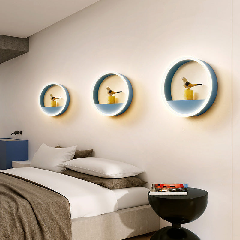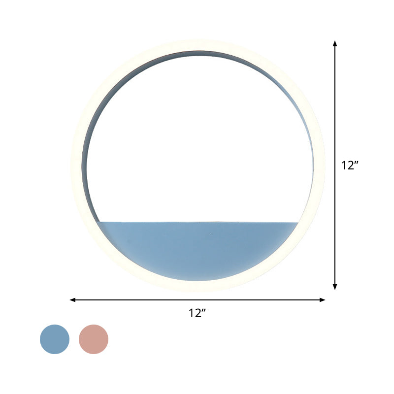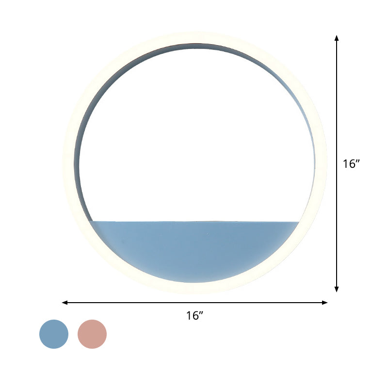 Iron Hoop Flush Mount Wall Light: Macaron Pink/Blue 12/16 Wide Led Sconce With Storage Rack