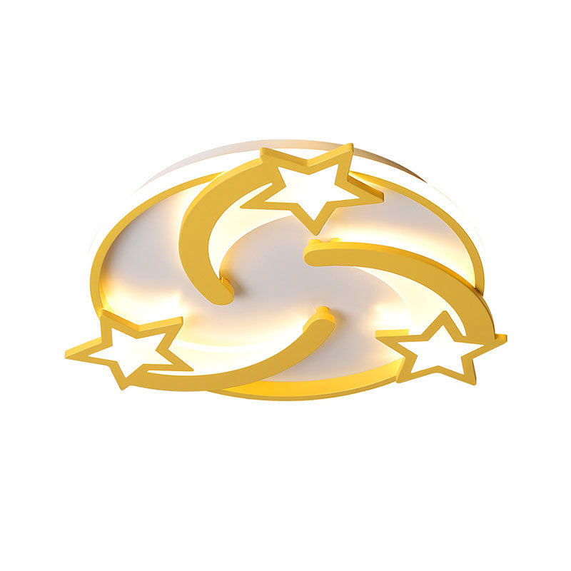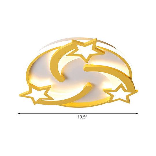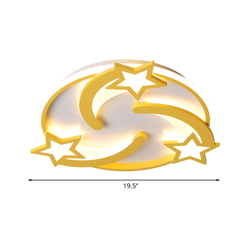 Kids Star Flush Mount Led Bedroom Ceiling Light In Yellow - 16’/19.5’ Wide