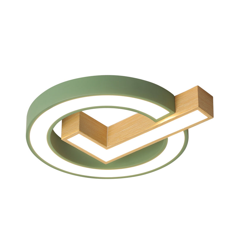 Green/Grey - Wood Flush Mount Led Ceiling Light For Kids’ Rooms