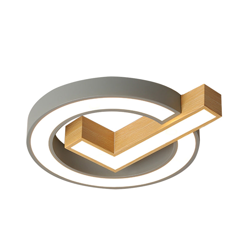 Green/Grey-Wood Flush Mount Led Ceiling Light For Kids Rooms Grey
