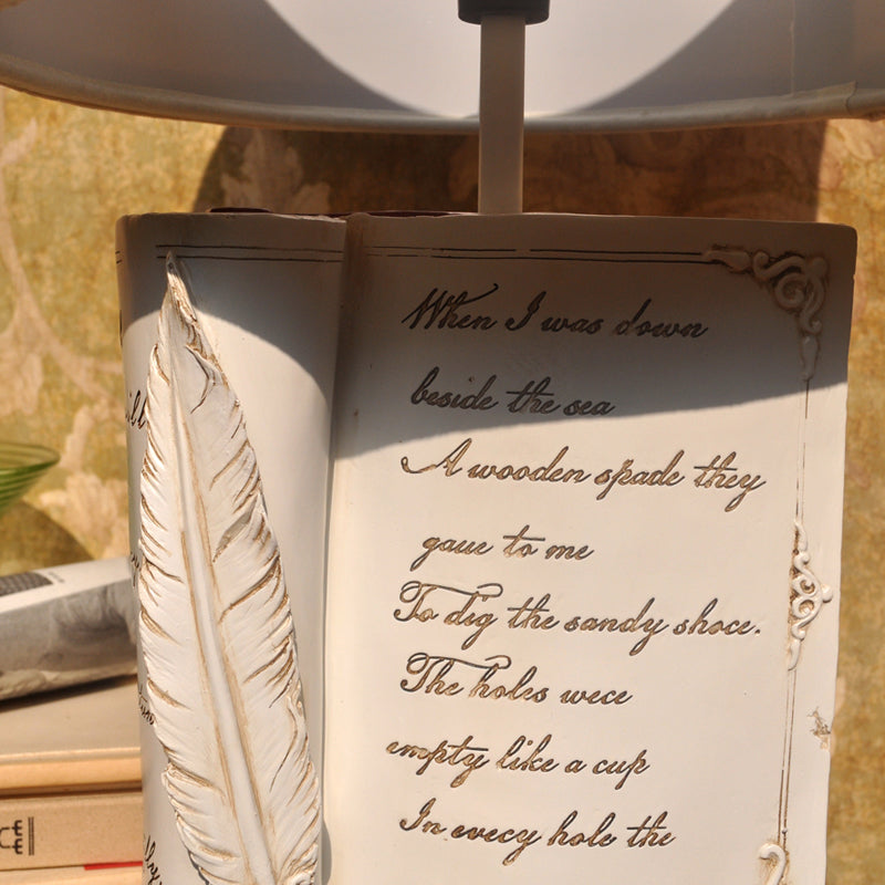 Childrens White Reading Light With Drum Shade And Book Base - Study Room Or Bedroom Lighting