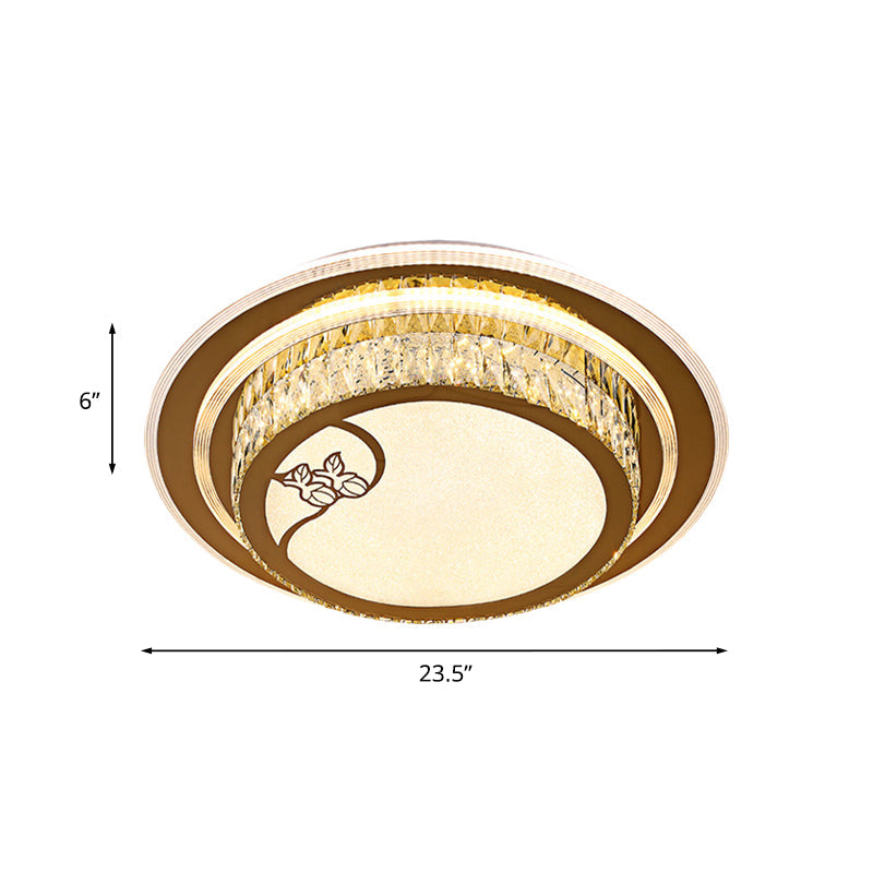 Contemporary Led Crystal Ceiling Light - Chrome Drum Flush Mount For Bedroom