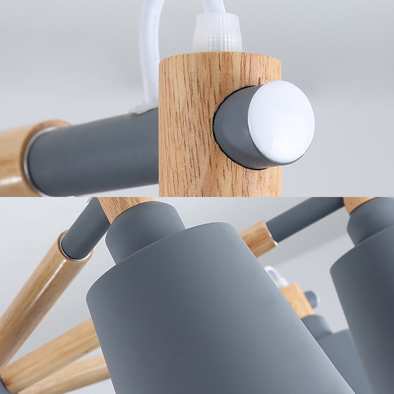 Metal Macaroon Hanging Lamp With Tapered Shade - Stylish Lighting Fixture For Living Room Grey