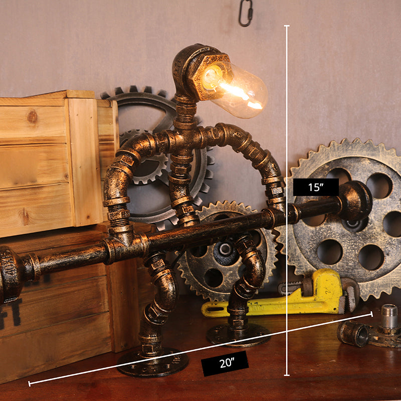 Steampunk Style Water Pipe Table Lamp Metal Antiqued Bronze Nightstand Light / Athlete