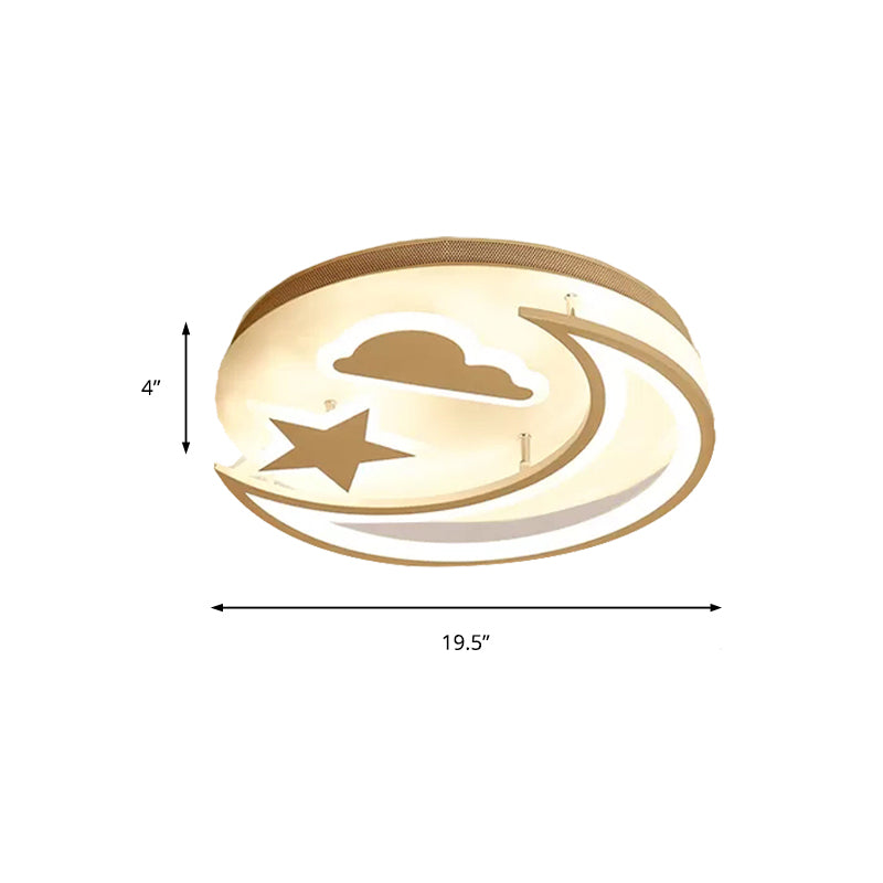White Metal Moon And Star Flush Ceiling Light For Kid’s Cartoon Bedroom / 16’ Warm