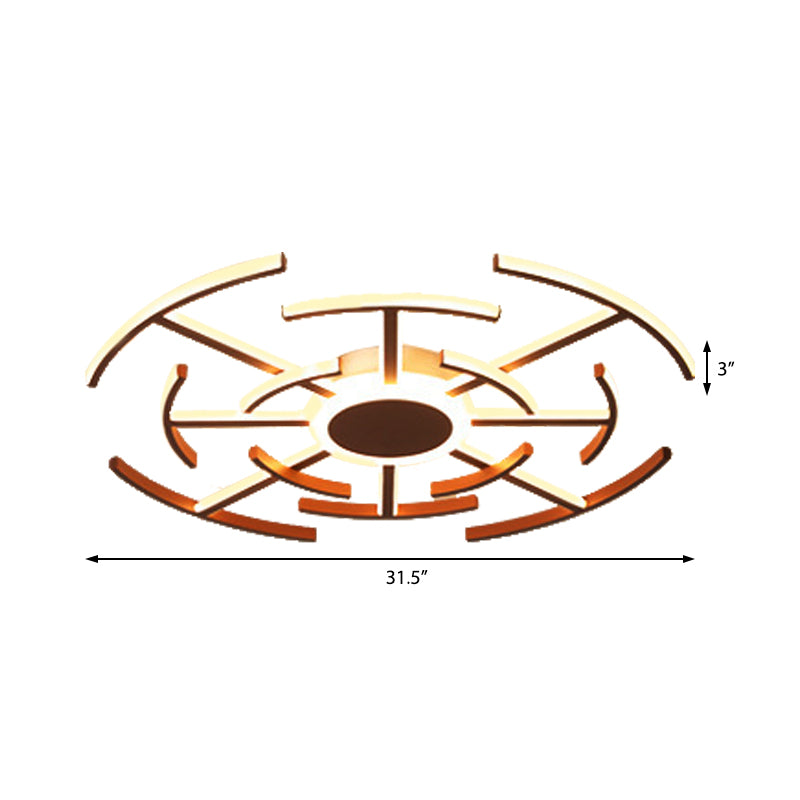 Contemporary Metal Round Flushmount Light With Maze Design - Brown 16 / White