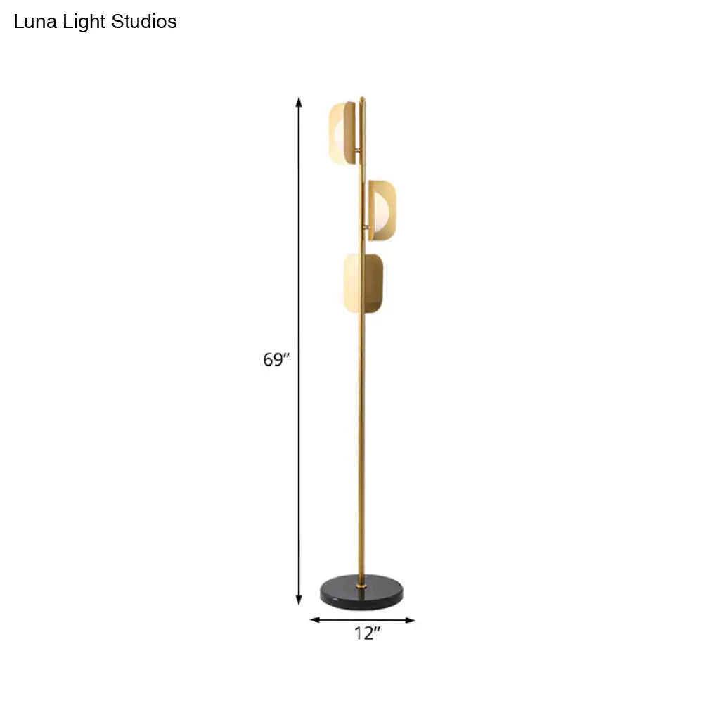 Moderne geometrische Lese-Stehlampe aus goldfarbenem Metall – elegantes 3-flammiges Stehlicht für das Wohnzimmer