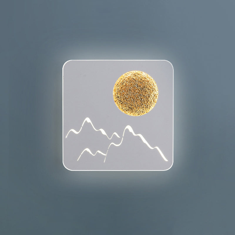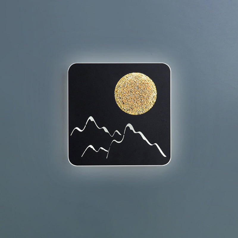 Nordische minimalistische LED-Wandleuchte mit Unterputzmontage – Mini-Design rund/quadratisch in Schwarz/Weiß/Grau mit Vollmond-Berg-Muster