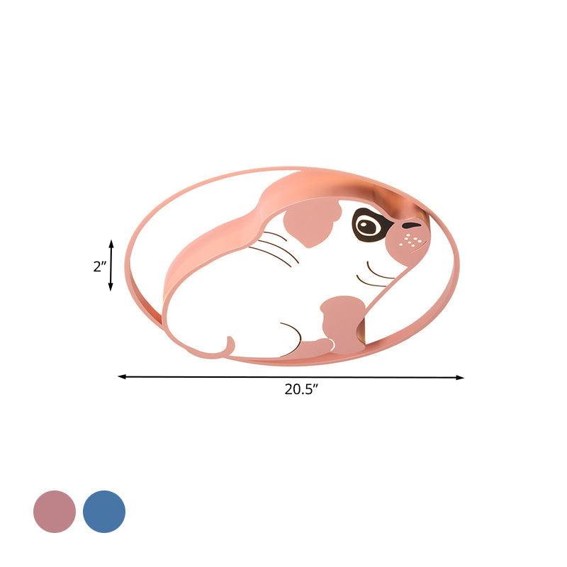 Led Ceiling Flush Mount Pink/Blue Dog Shaped Light Fixture With Acrylic Shade In Warm/White -