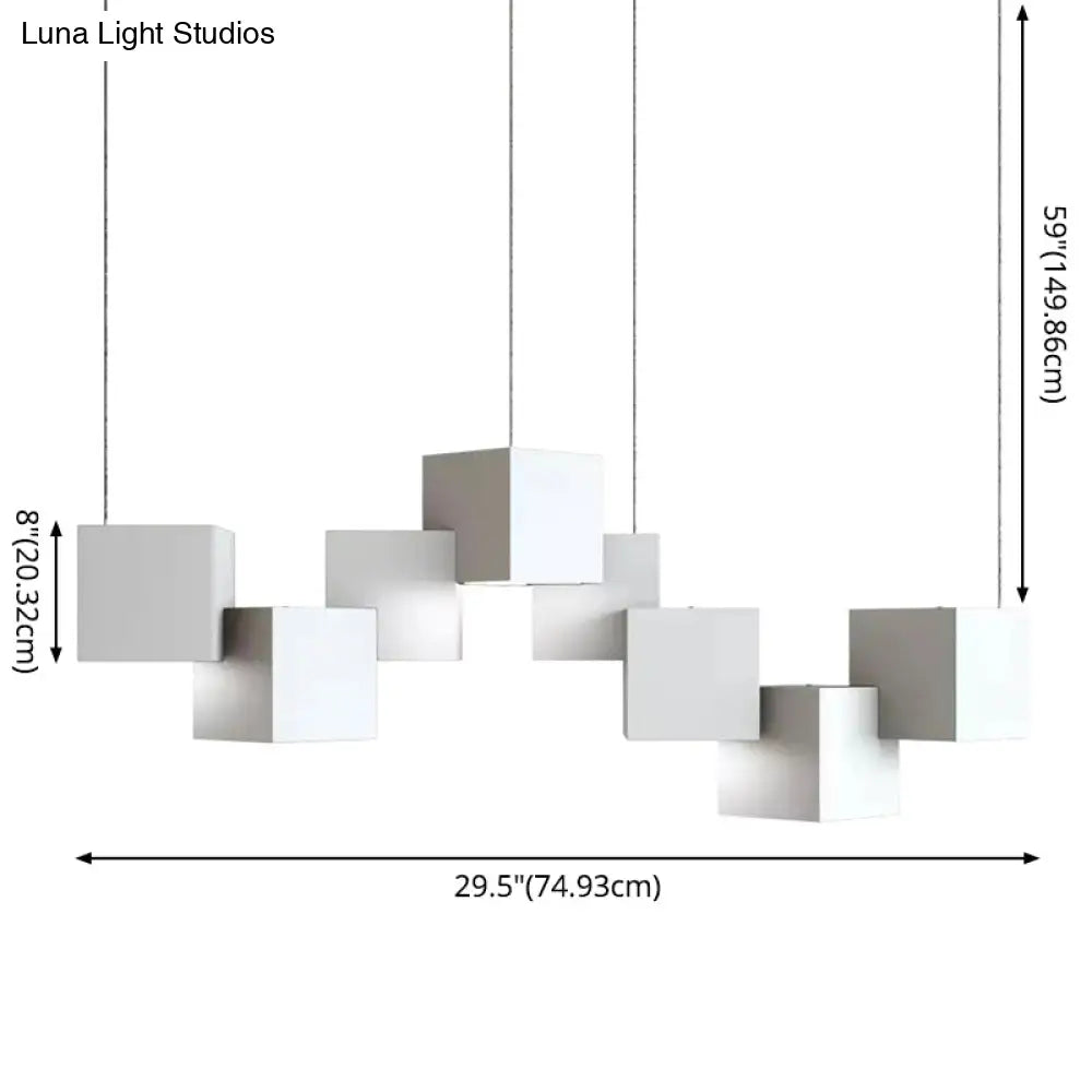 Diese moderne LED-Inselleuchte passt perfekt in jedes moderne Wohnzimmer. Ihr schlichtes, metallisches Design zeichnet diese geometrische Pendelleuchte aus, die in jedem Zuhause ein Statement setzt. Die Leuchte wird mit einem Schirm aus weißem Acryl geliefert und ist mit einer 149 cm langen Kette und einem Kabel ausgestattet. Sie ist außerdem mit sieben 20 cm großen quadratischen Glühbirnen ausgestattet, die eine Lichtleistung von 40 bis 59 Watt liefern.