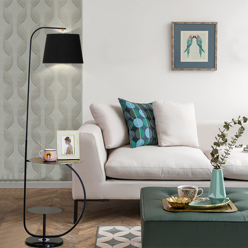Modernist 1-Bulb Floor Standing Lamp - Fabric Shade Black Finish