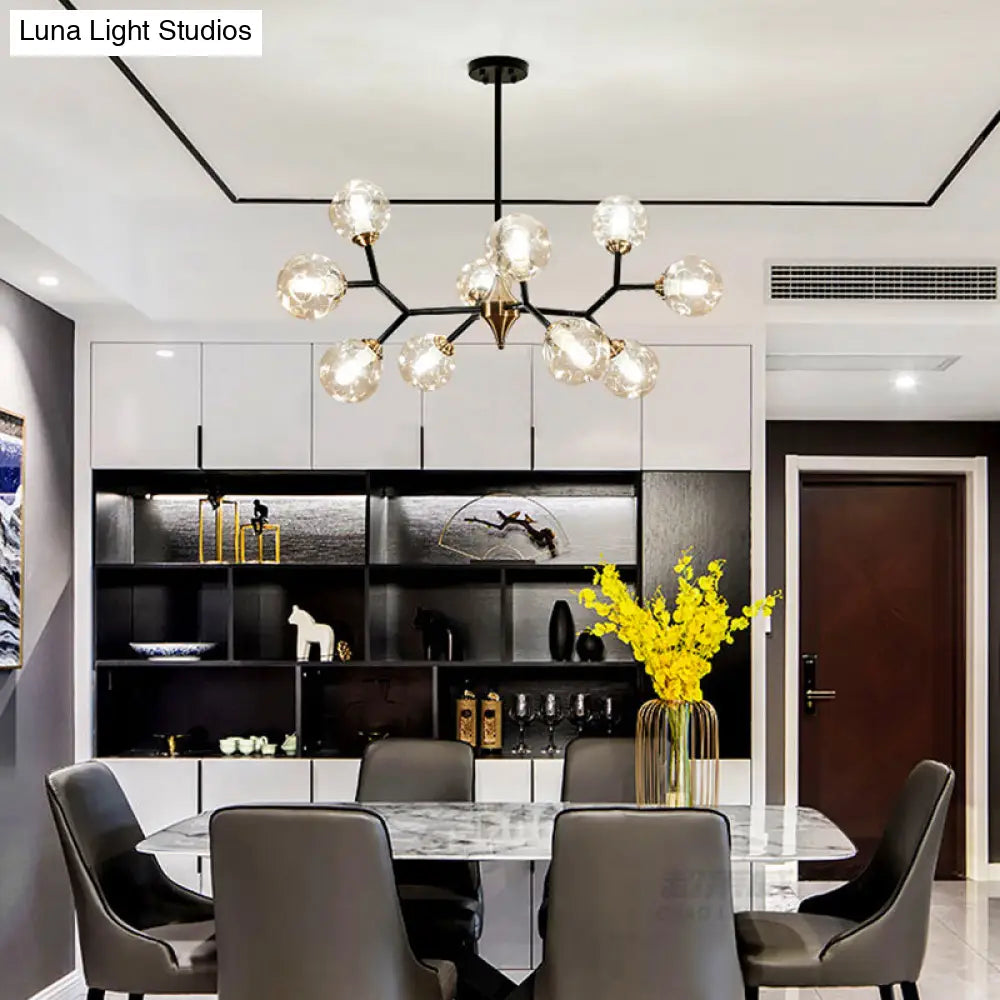 Nordisches Bubble-Hängelampen-Set – Kronleuchter aus klarem/bernsteinfarbenem/rauchgrauem Glas mit Noppen – Ideal für das Esszimmer – 6/10 Köpfe