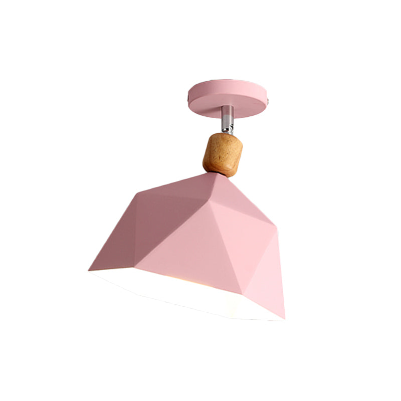 Shade Faceted Dome Deckenleuchte - Macaron Metall Halbbündige Montage für Wohnungen - Rosa/Gold-Holz