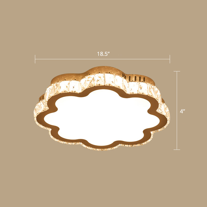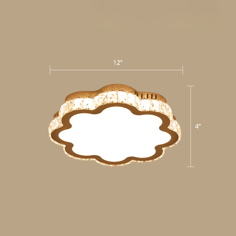 Prismatic K9 Crystal Ceiling Light: Elegant White Flush Mount Led For Bedroom / Small Flower