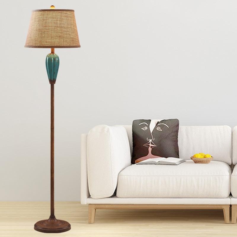 Retro Porcelain Urn Shape Floor Lamp With Fabric Shade - Red/Blue