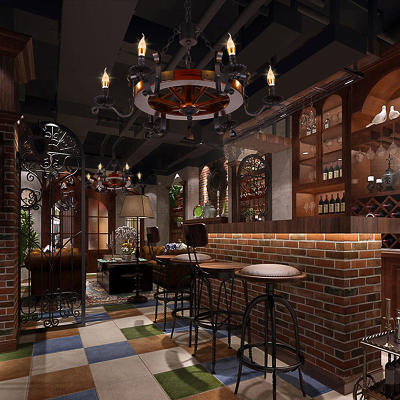 Rustic Wood Candle Chandelier - Red Brown 3/5/6 Lights Dining Room Hanging Light 6 /