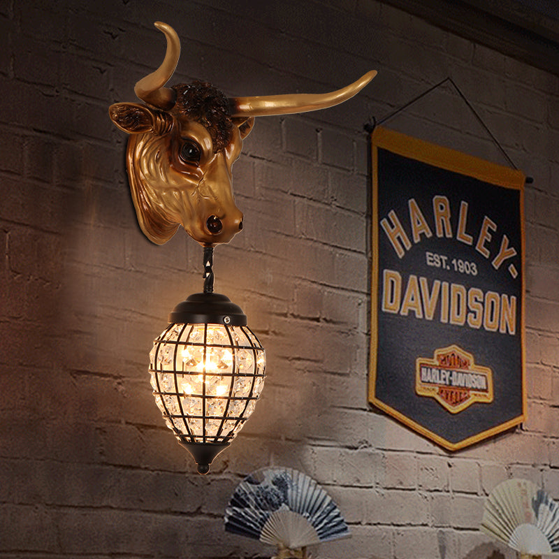 Schwarze Wandleuchte aus Kunstharz im Lodge-Stil mit Kristallschirm – 1-flammige Wandbeleuchtung für Bars