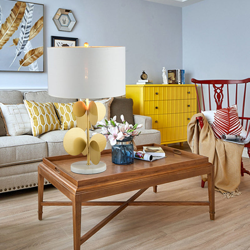Moderne Tischlampe aus Stoff: Schirm, weiß, 1 Glühbirne, Arbeitsbeleuchtung mit Marmorsockel