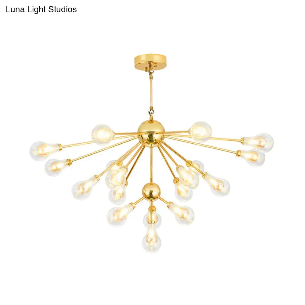 Moderner goldener LED-Sputnik-Kronleuchter mit klaren Glaslampenschirmen – Hängeleuchte mit mehreren Lichtern