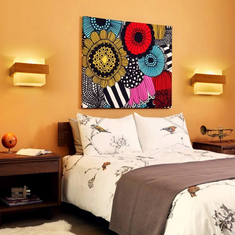 Wandleuchte im schlichten Stil aus weißem Glas mit 1 Licht und Holzstrebe für die Wandbeleuchtung im quadratischen Flur