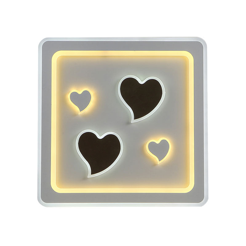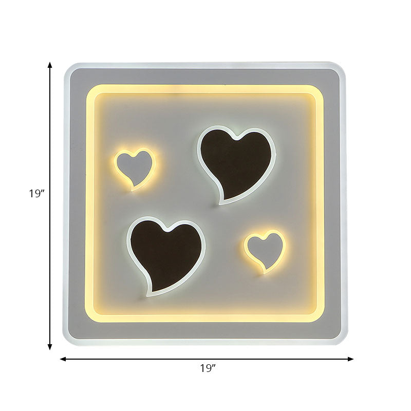 White Square Living Room Ceiling Lamp - Modern Acrylic Light Fixture / Loving Heart